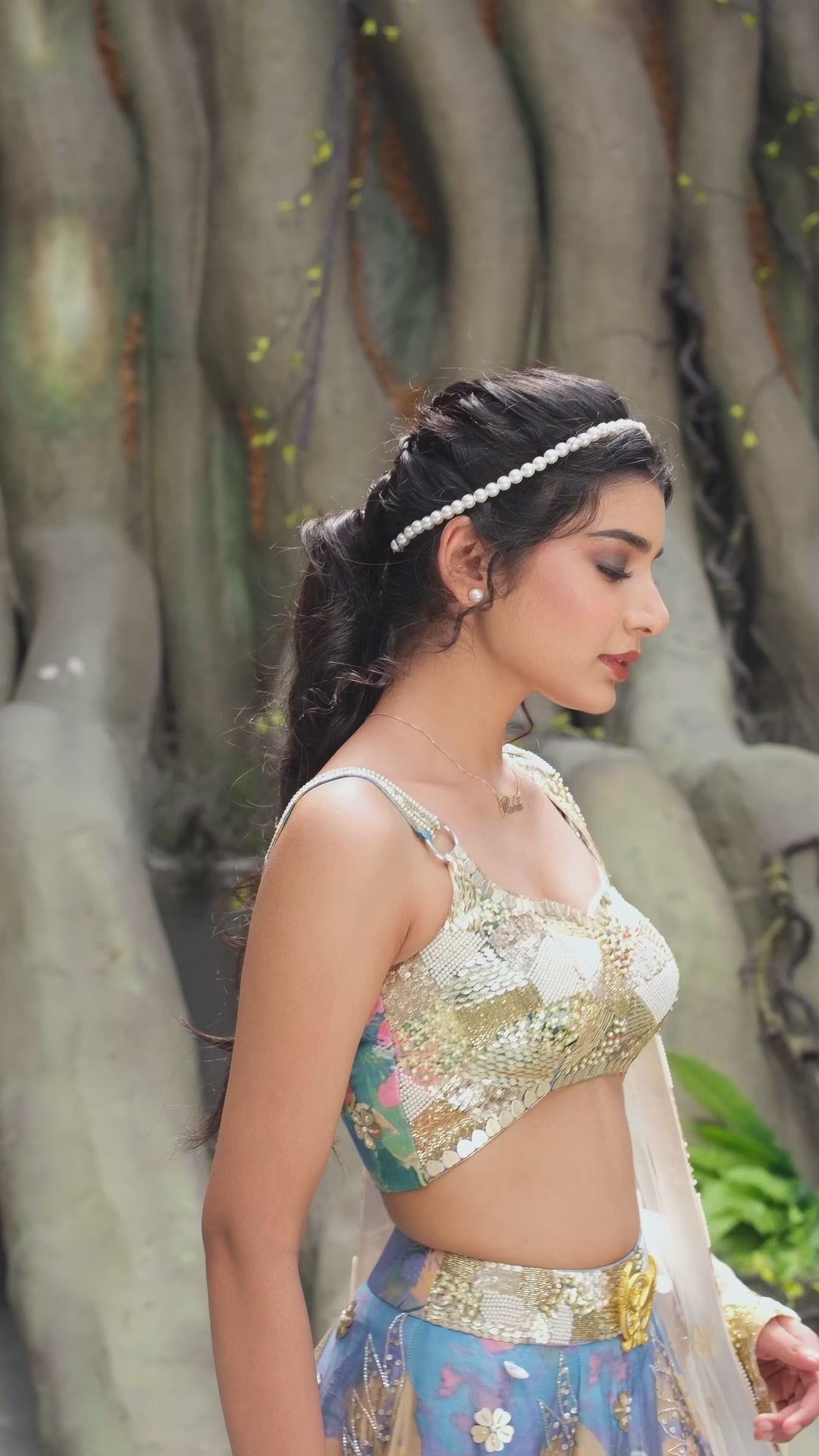 The Baagbageecha lehenga is a vibrant and lively ensemble, inspired by a garden in full bloom. Adorned with floral patterns and intricate embroidery, it features rich, colorful motifs that evoke the beauty of nature. Paired with a matching blouse and dupatta, this lehenga radiates a fresh, elegant charm, perfect for adding a touch of whimsy and sophistication to any special occasion.
